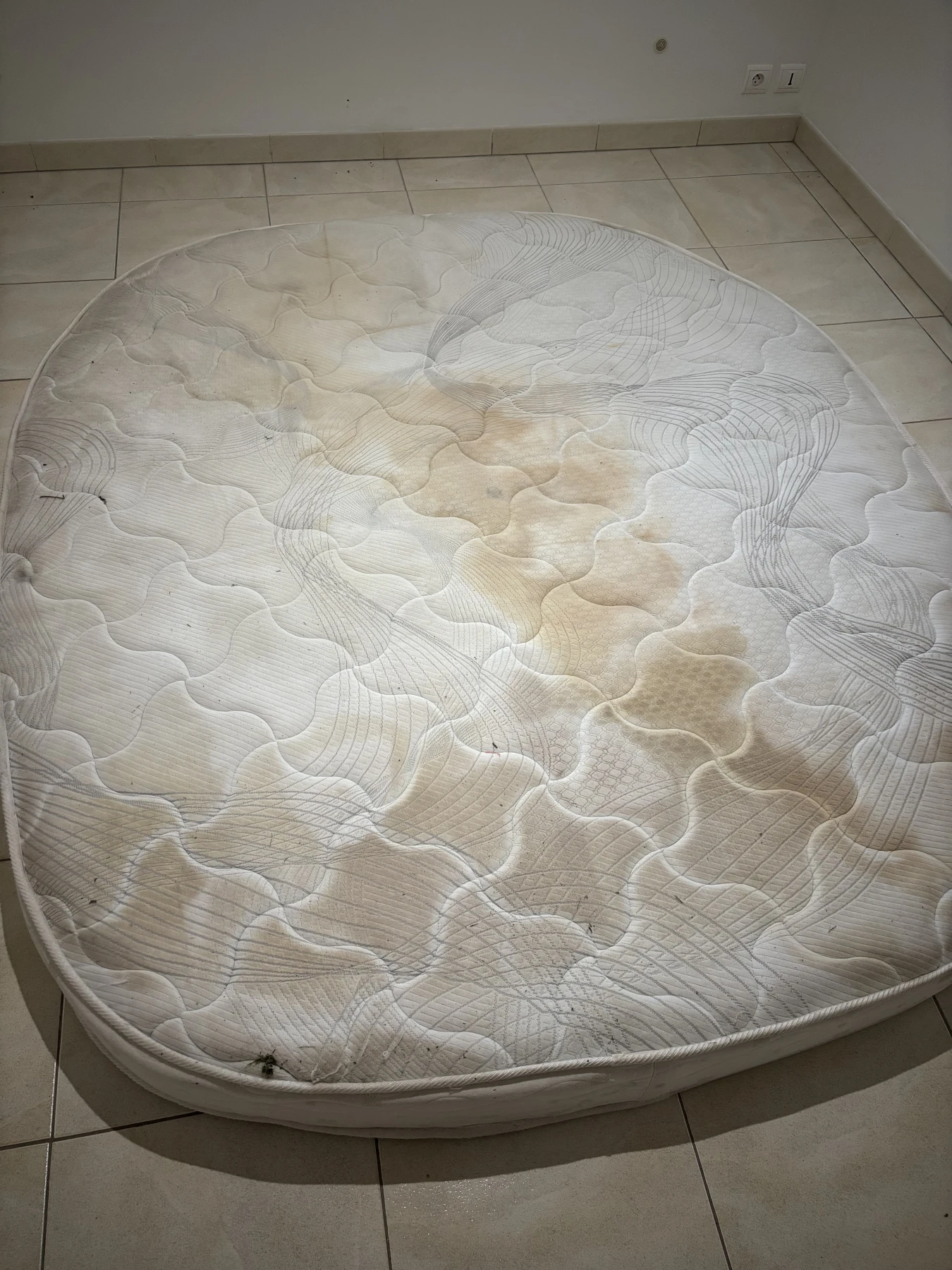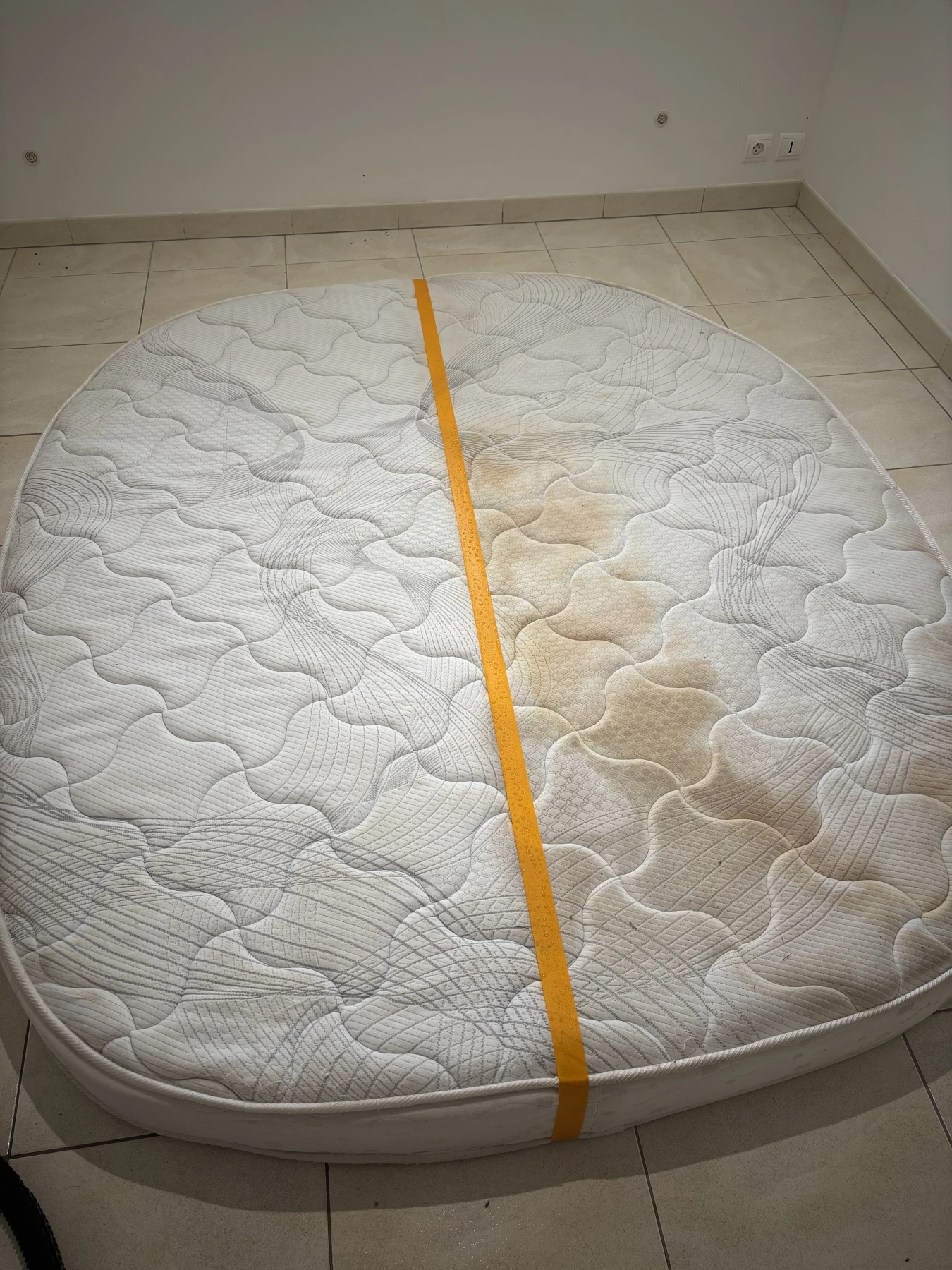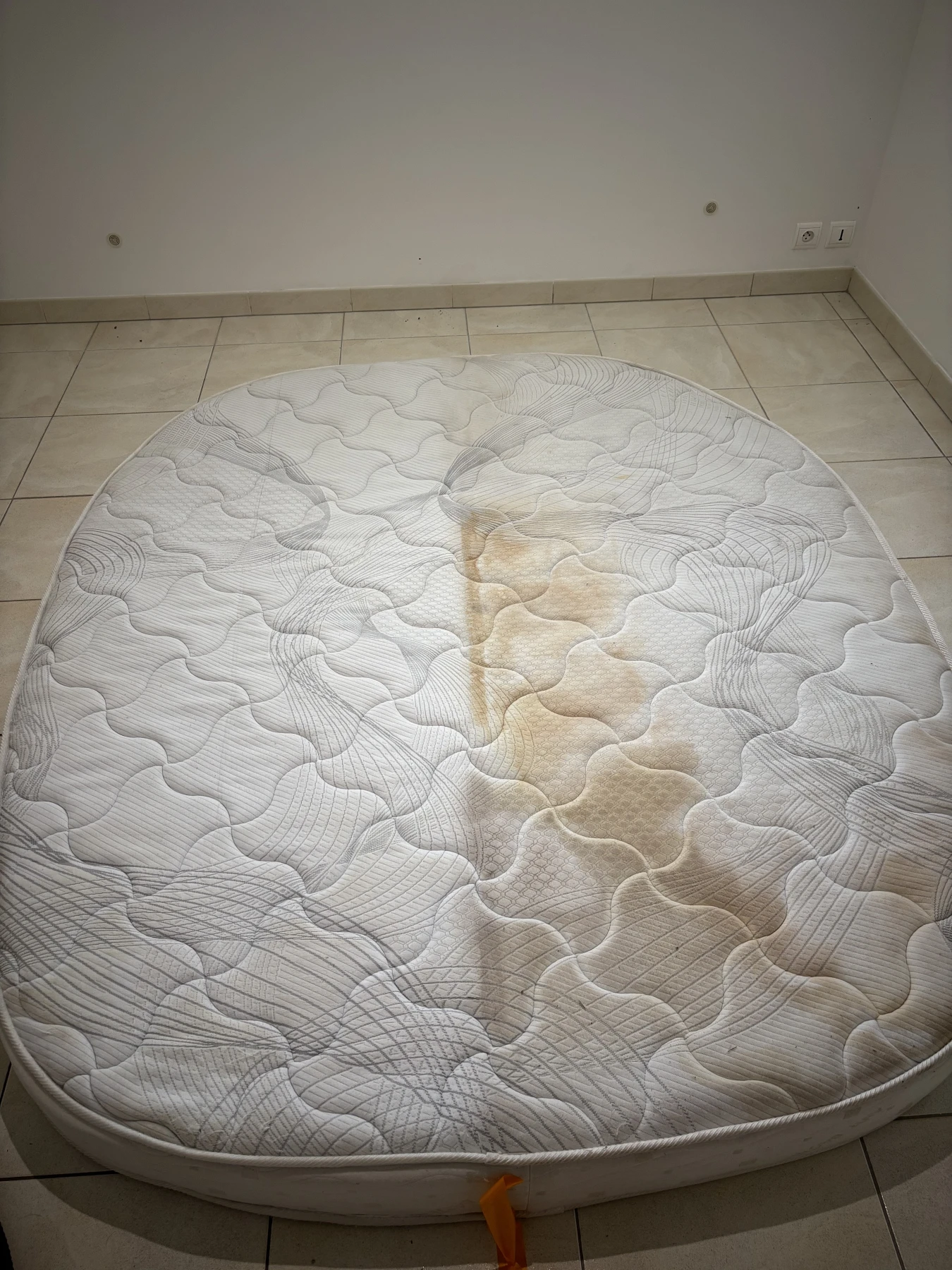Après notre intervention, le résultat a dépassé ses attentes. Grâce à un traitement en profondeur, combinant détachage, injection-extraction et désinfection, les traces ont été considérablement atténuées, laissant place à un matelas visuellement quasi neuf.