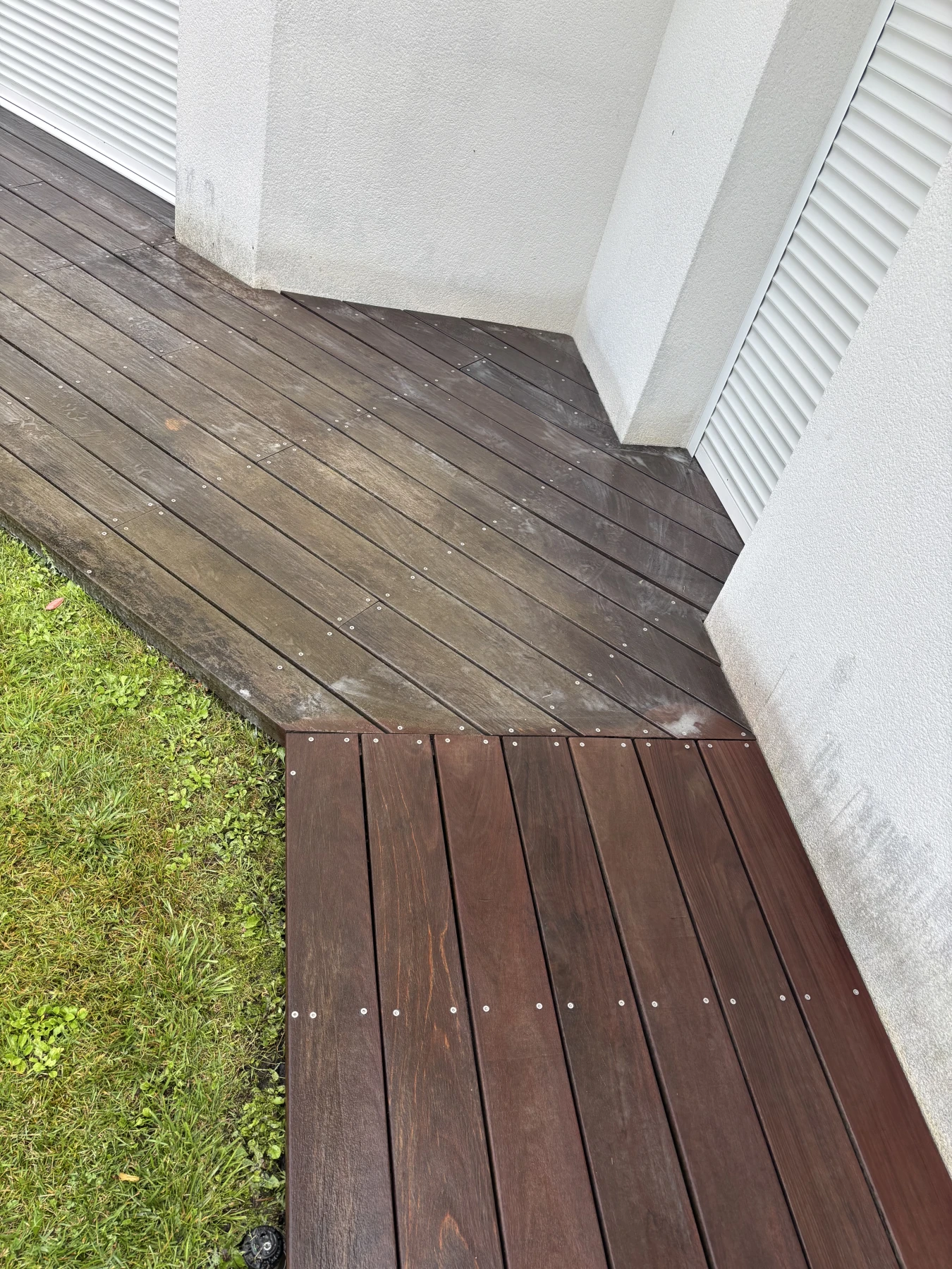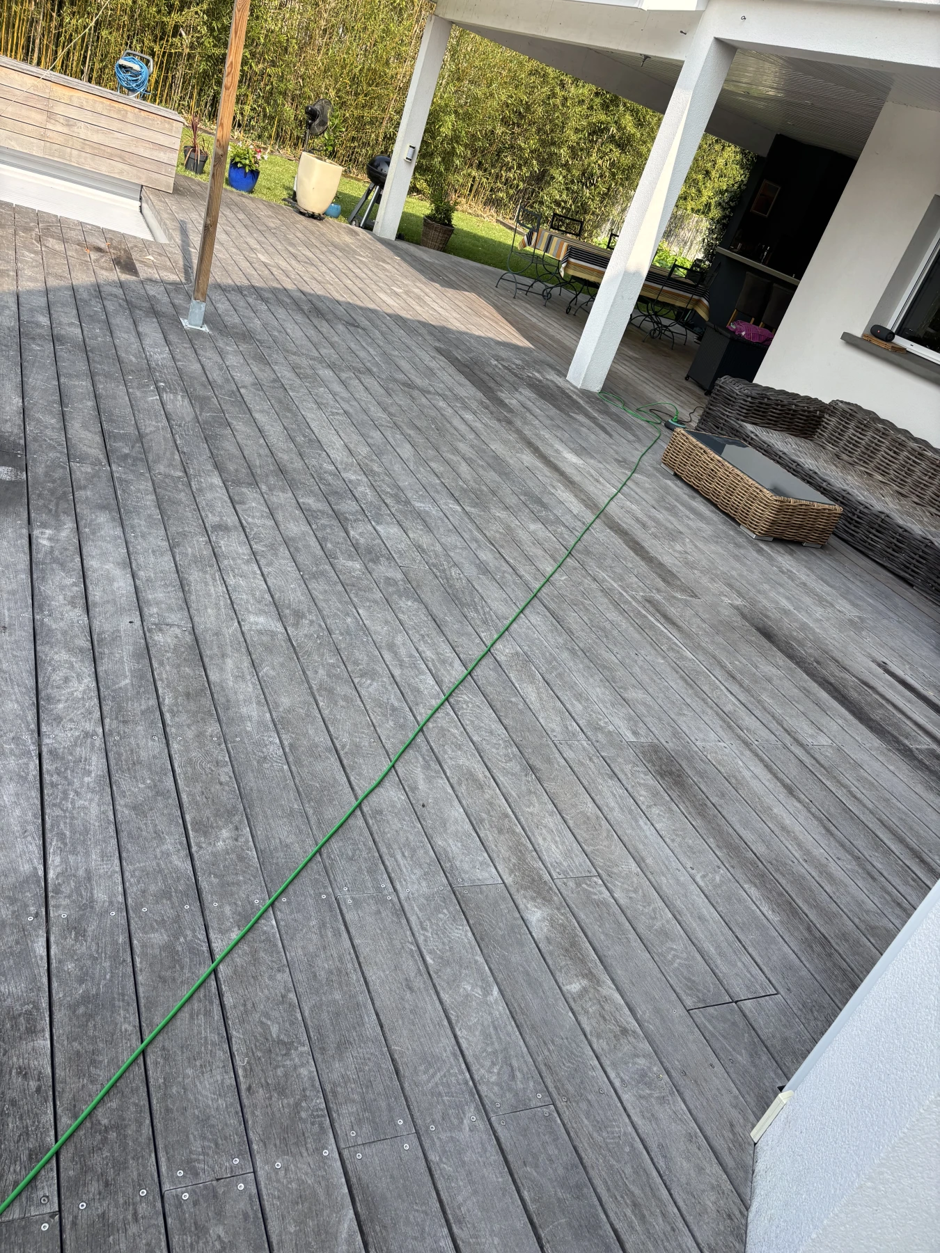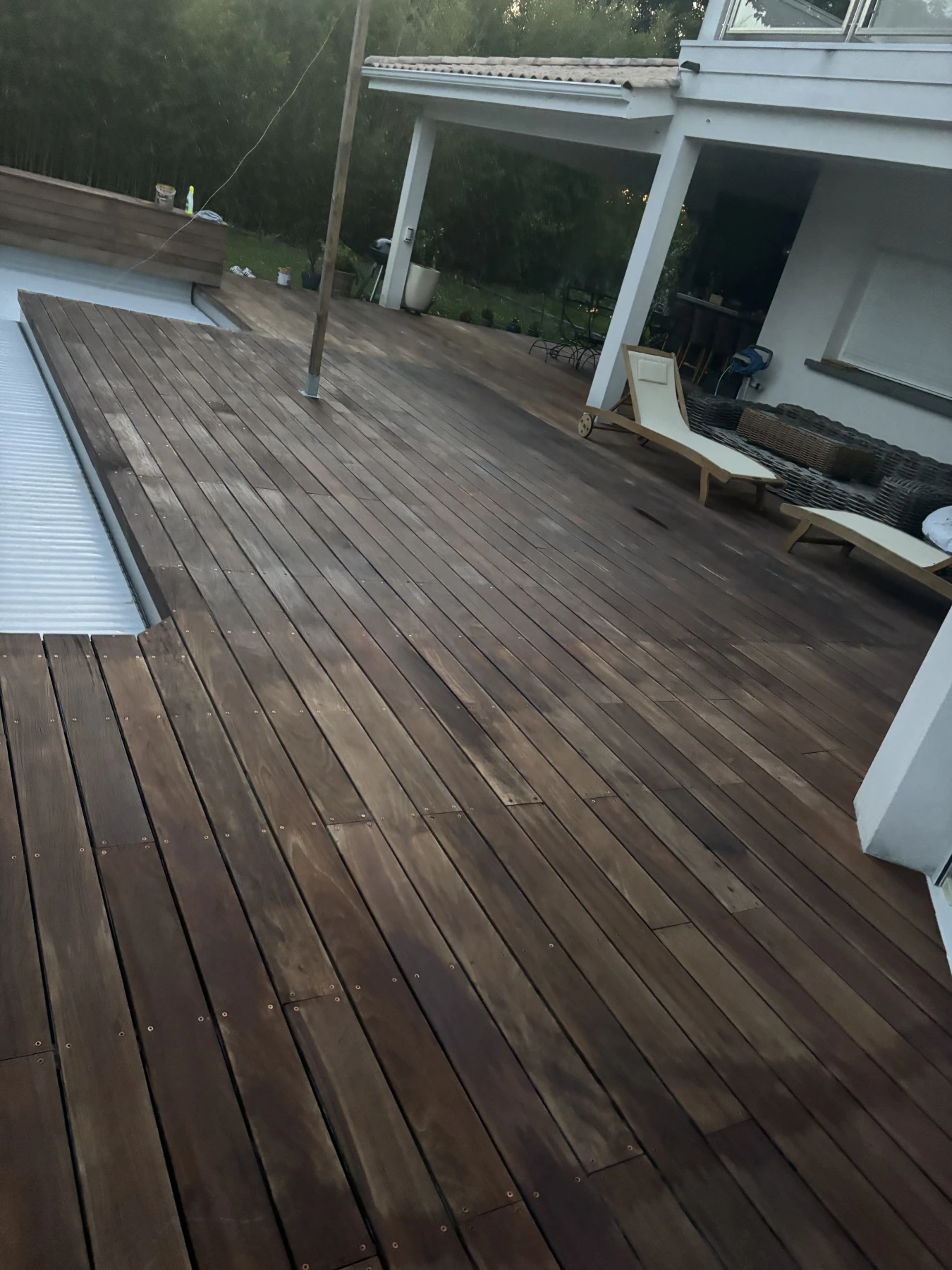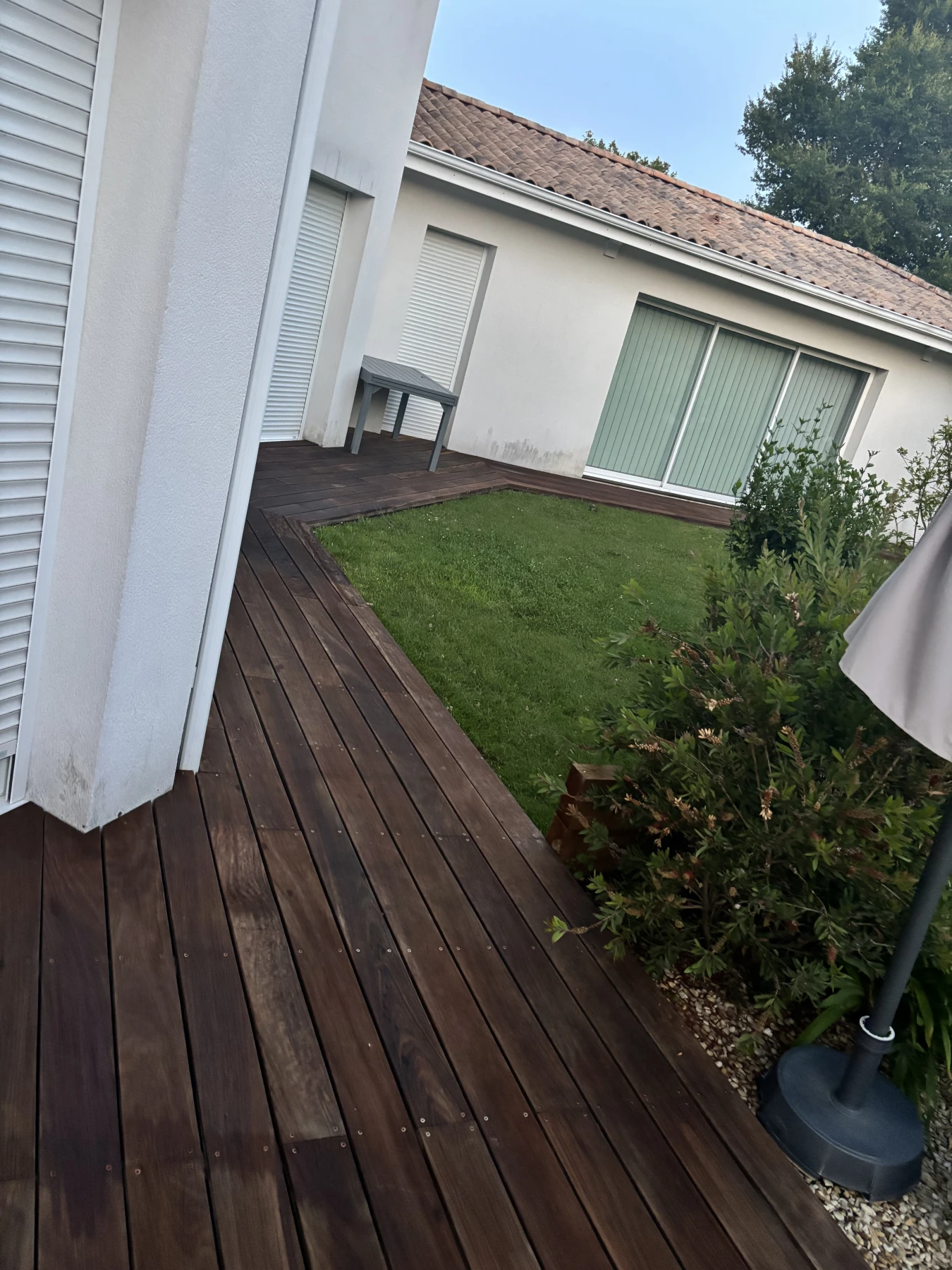 Grâce à cette intervention, la terrasse a retrouvé son éclat d’origine, avec une finition chaleureuse et naturelle, prête à être pleinement appréciée pour les saisons à venir.